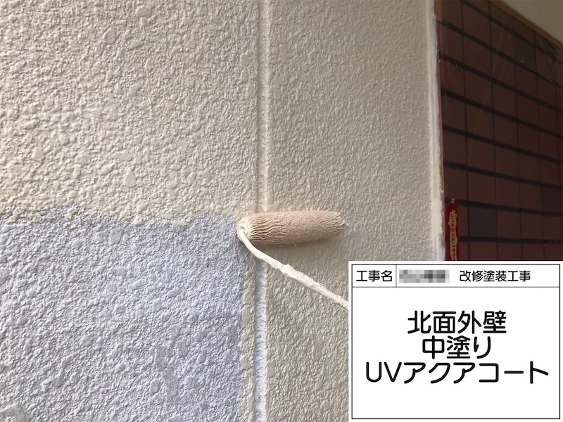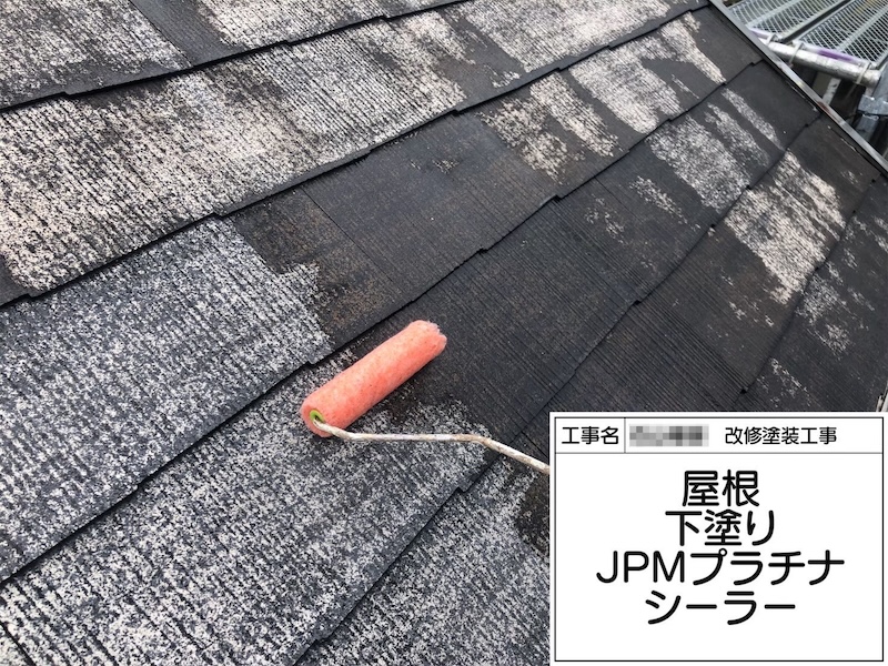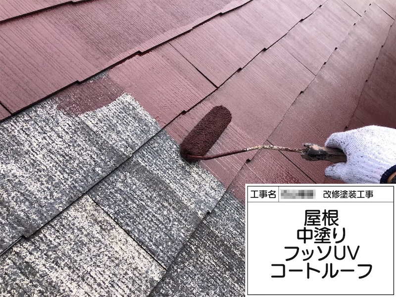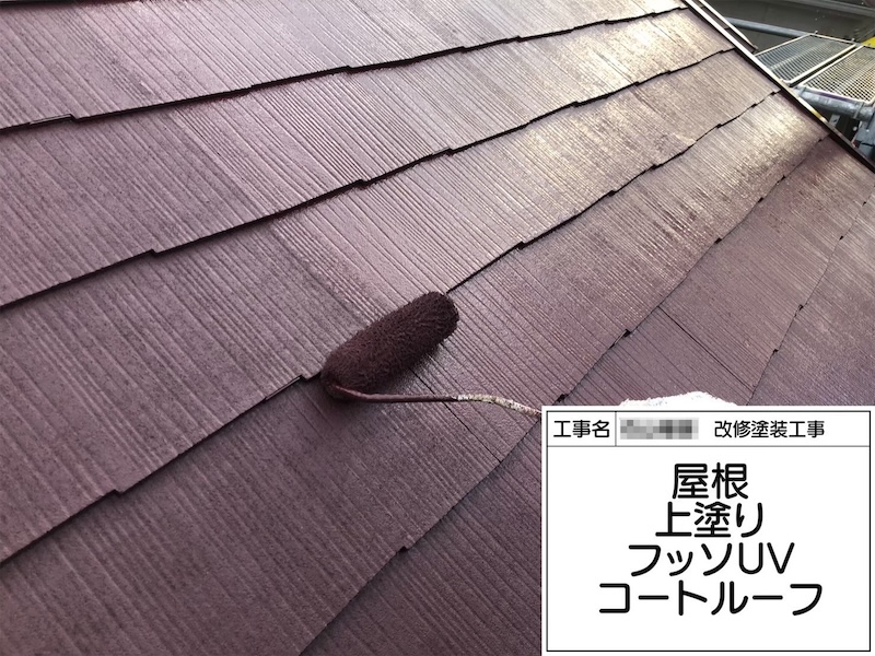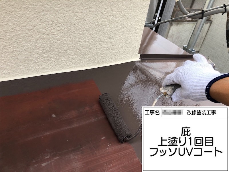 縁切り後、フッ素UVコートルーフで中塗りと上塗りをしました。