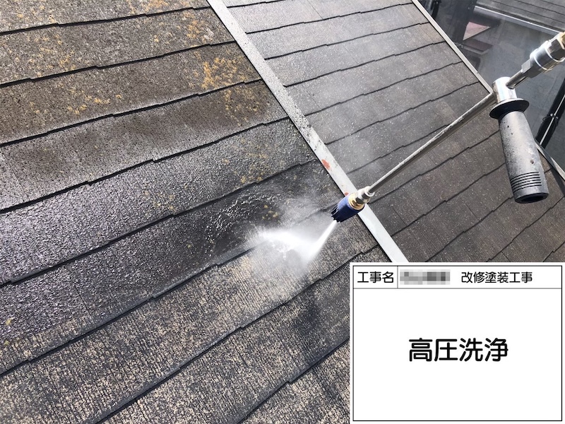 I様邸では屋根も塗装しますので、こちらもきれいに洗浄します。