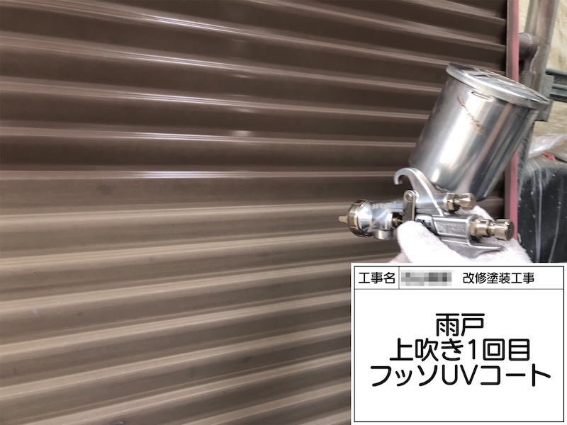 雨戸はスプレーガンを使って吹き付け塗装で仕上げています。