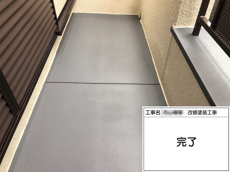 バルコニーの防水の劣化も見られましたので、今回こちらもメンテナンスさせていただいております。