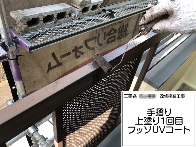 鉄部はサビが発生していましたので、念入りにケレンを行ってから塗装しました。