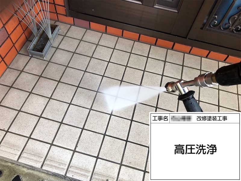 塀や土間コンクリート、玄関タイルなども洗浄し、建物全体の美観が高まるように隅々まで洗浄させていただきました。