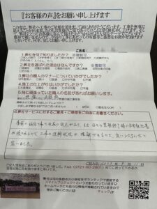 この度は弊社に工事のご依頼をくださり誠にありがとうございました。